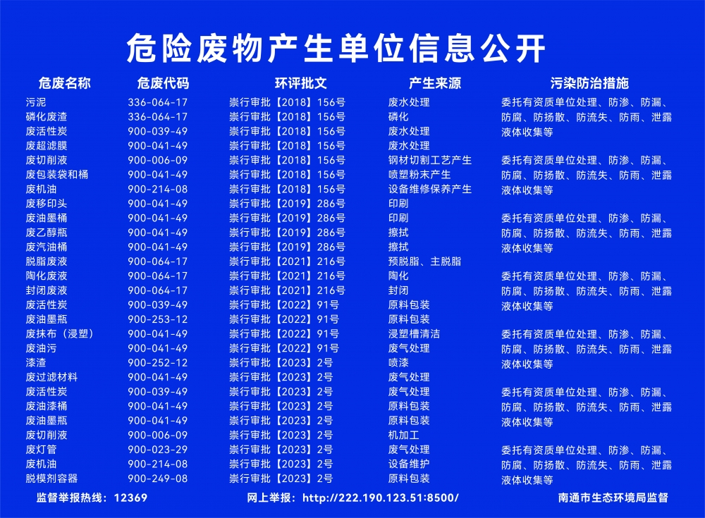 公司主要危險廢物信息公示如下: